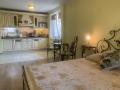 Хороший просторный номер,но в одной из комнат не работает кондиционер,соответственно очень жарко. Хотелось оставлять хотя-бы в одной комнате,чтобы охлаждал все помещение,но как только мы уходили,смотрительница приходила и выключала его. В номере в целом чисто,но в визуальных местах. если отодвинуть занавески и заглянуть за кресло или диван, то там везде паутина висит и пыль. В номере большом кухонный гарнитур,но ни плиты ни микроволновки нет,соответственно готовить не получится. У нас был красивый вид на море,дом находиться на горе,поэтому к морю неочень удобный выход,идти минут 7,но подниматься обратно по крутому подъему,а потом по ступеням по жаре тяжелова-то.