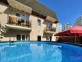 Хороший дом, всего 2 этажа, номеров не много, в этом плюс что нет толпы людей. Общая летная кухня со всей необходимой утварью, мангал. Бассейн каркасный, достаточно большой, чистый, лежаки, зонты, качель. Территория огорожена. Администратор очень внимательна, все показала, рассказала, где и что находится. Заселение прошло без каких либо заминок, сразу же встретили у калитки и провели в номера. Номера с современной мебелью. Кровать, шкаф, стол, тумбочки, есть сплит и маленький холодильник. Удобства-душ, туалет, раковина. Рядом пятерочка, аптека, банкомат, до аквапарка пару минут, до моря около 10-15 минут, в зависимости на какой пляж пойдете, рекомендую на Багратион, большой чистый, по головам не ходишь, есть как и шезлонги с зонтиками, так и место полежать на покрывальце. Приезжали с друзьями все остались довольны, если в этом году поедем то опять в асторию.