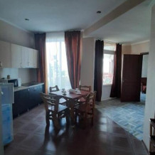 Номер-студия в Эко-стиле. В номере 3 комнаты + большой балкон. Спальня, гостиная, кухня, гардеробная, санузел. Номер находится на 3 этаже, откуда открывается великолепный панорамный вид на море, горы.