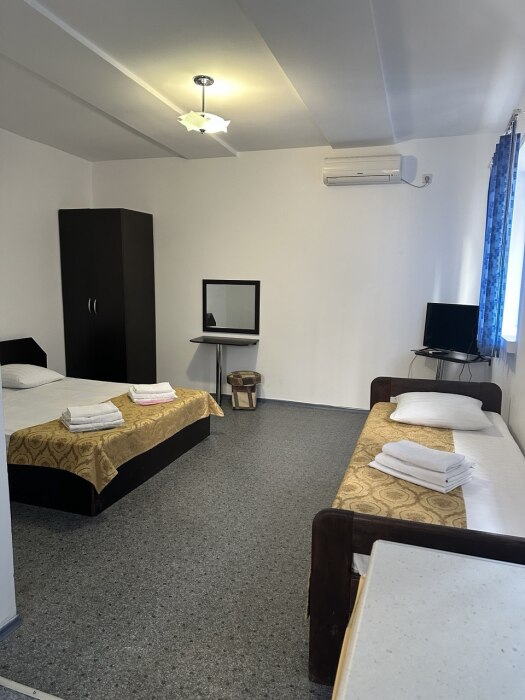 Имеются 2х местные , 3х местные, семейные номера(на 6 человек