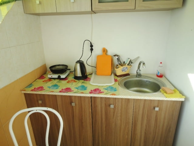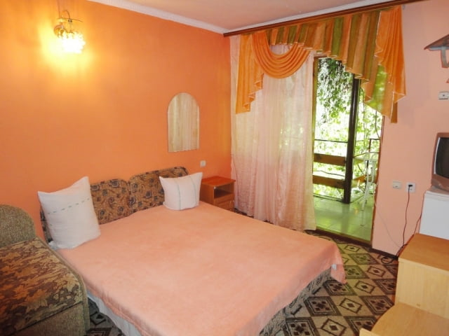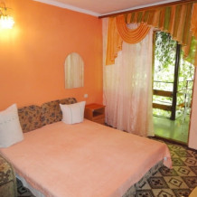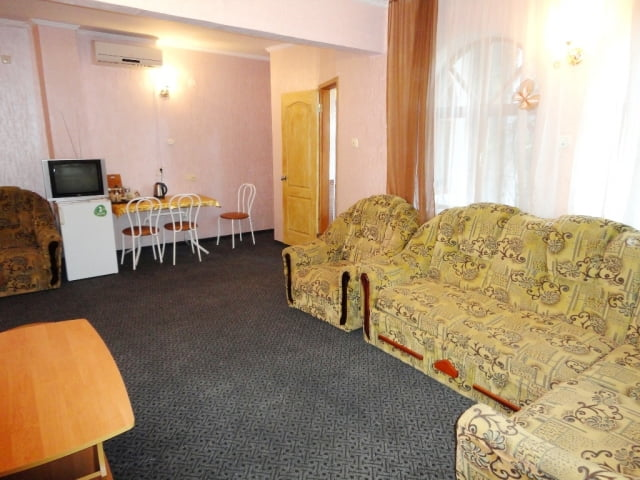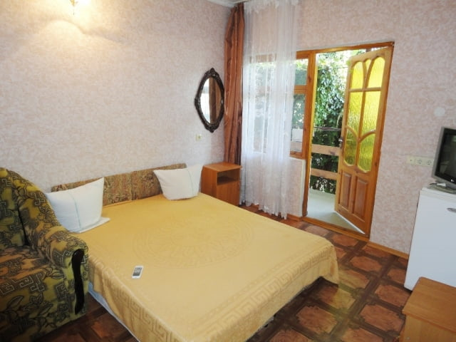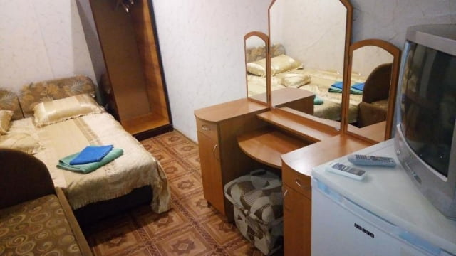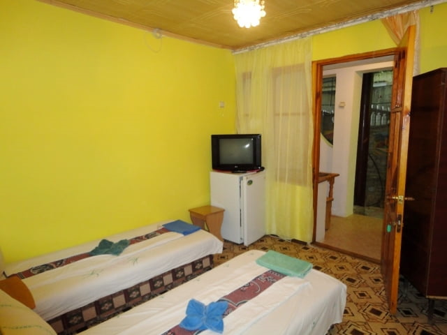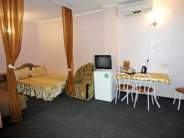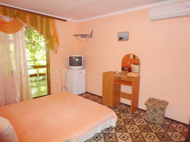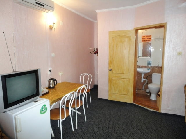 В комнате две раздельные кровати (можно сдвинуть в одну двуспальную), холодильник, кондиционер, телевизор, душ, рукомойник. У входа в комнату свой столик со стульями.