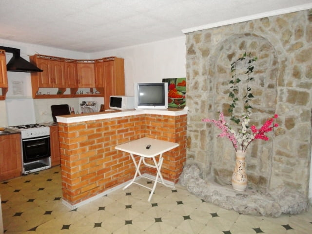Площадь всего дворика с домиком примерно 3.5 сотки. Очень тихо и спокойно. Телевидение кабельное.