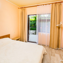 Просторный и светлый номер, с собственной терассой, в огромном дворе, где есть много места, и хорошо с детьми.