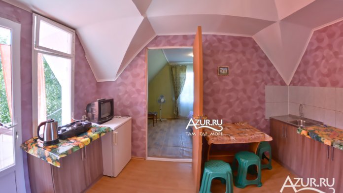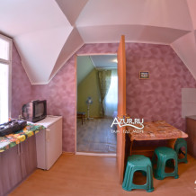 Просторная закрытая территория, полная тенистой и декоративной зелени с местами для отдыха, мангальная площадка, детский уголок с качелями и песочницей, просторная полноценная летняя кухня-столовая. Отдыхающим предлагаются различные варианты размещения - от небольших уютных экономов с общими удобствами и кухней, до просторных семейных номеров, с собственными: кухней, санузлами, кондиционером и балконами.