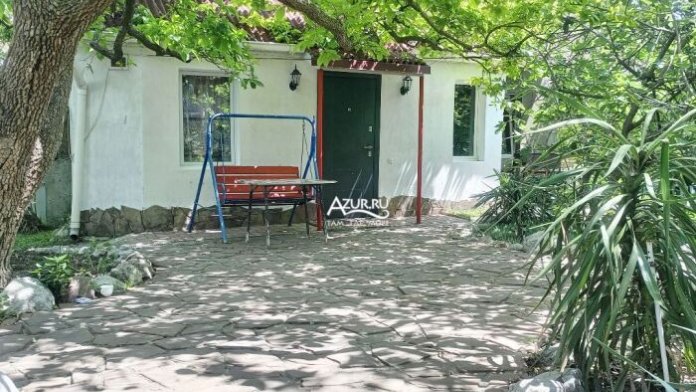 У входа в дом своя территория с качелей и столом.