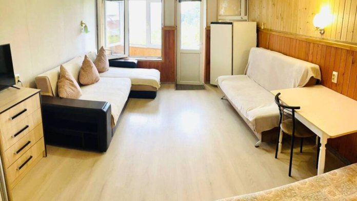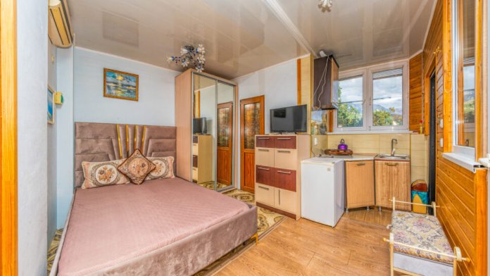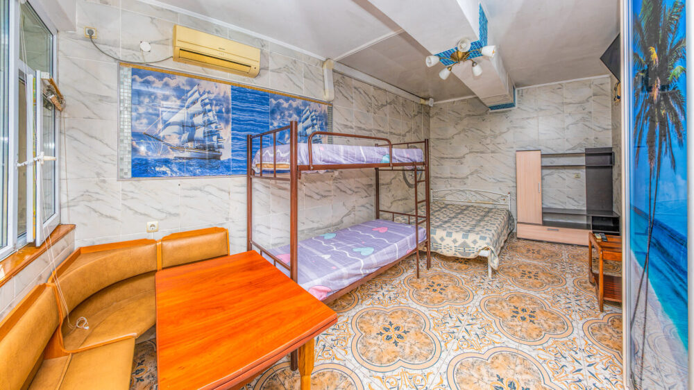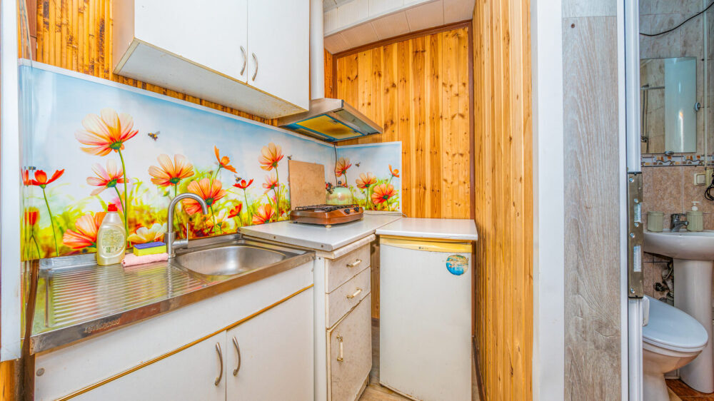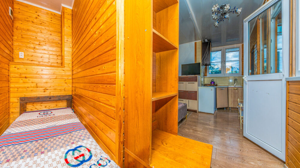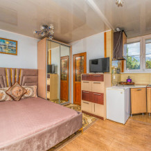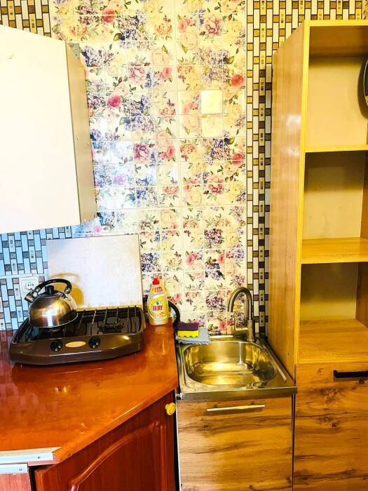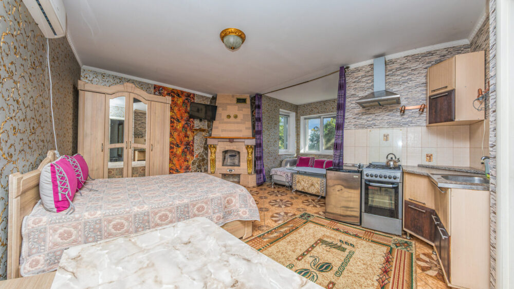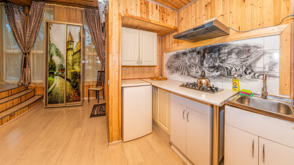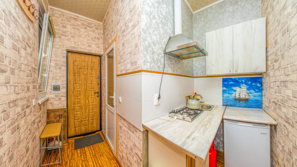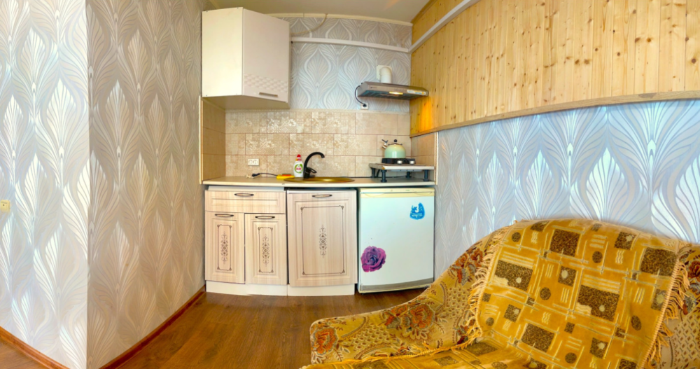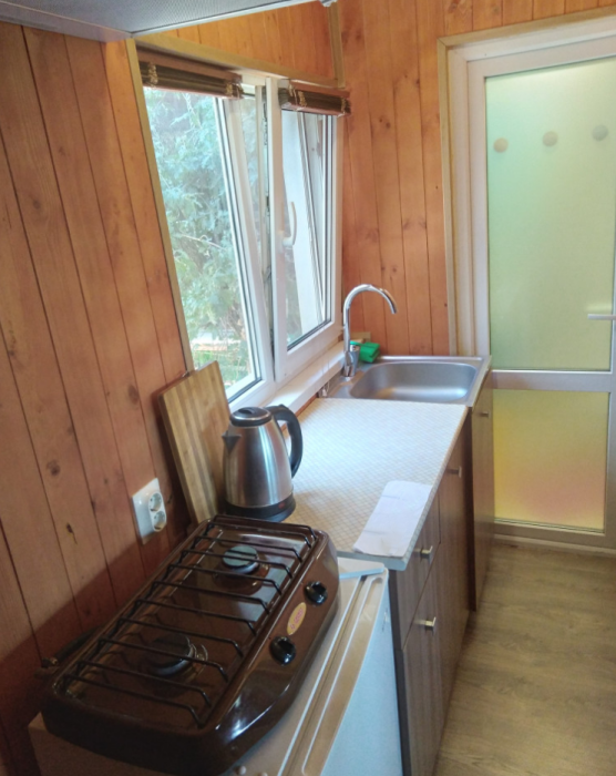 Номер на 1 этаже. Кухня, газовая плита, посуда. Кафельный пол. По договорённости возможно проживание с собачкой.