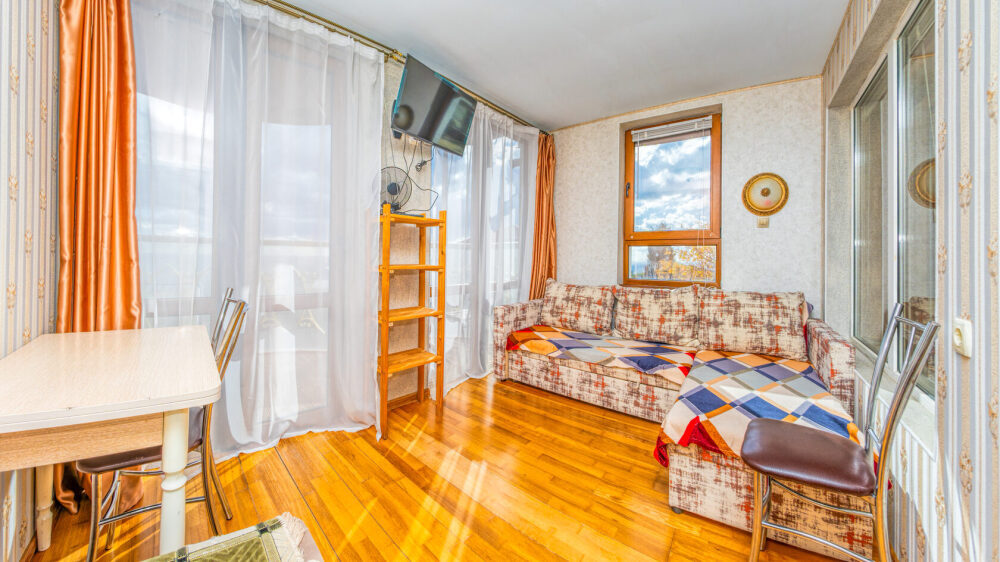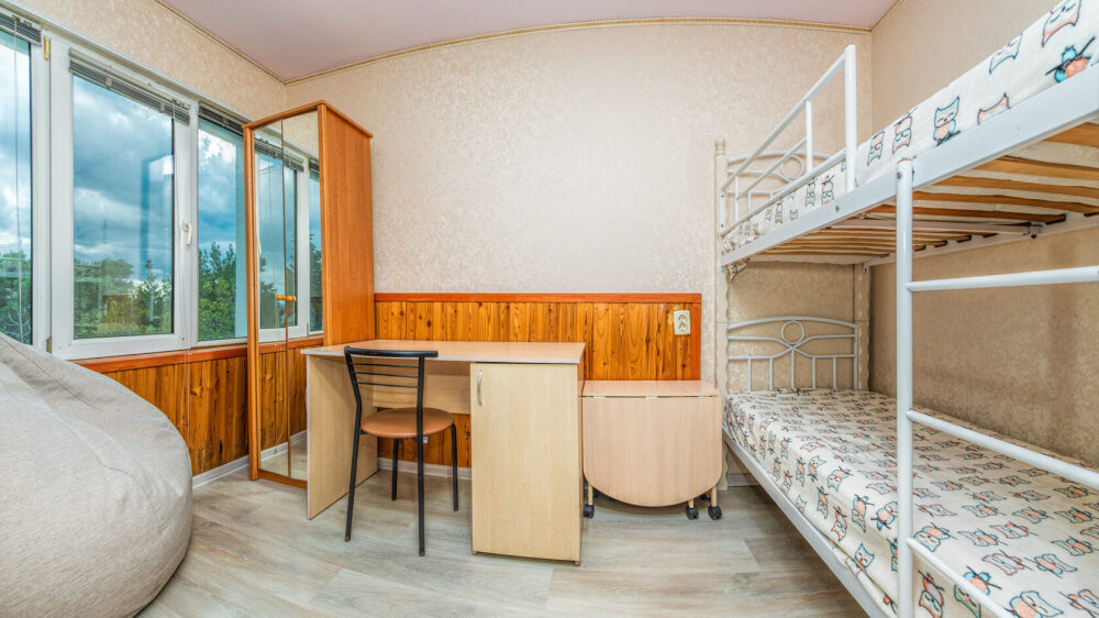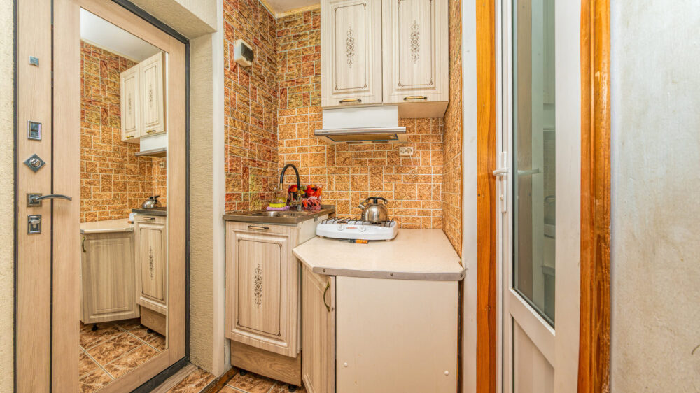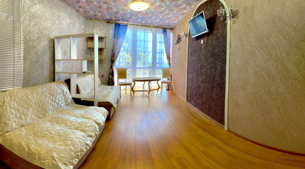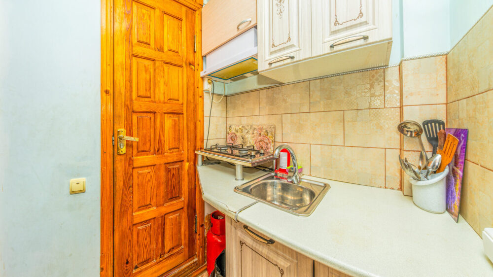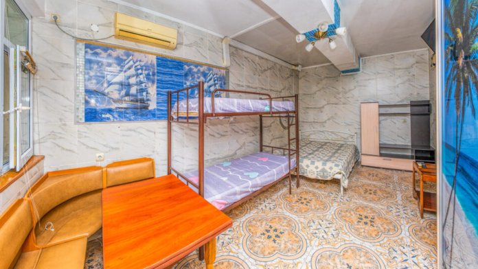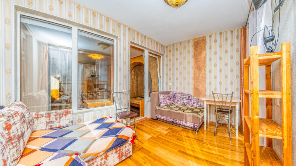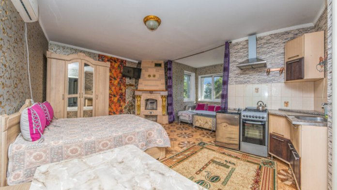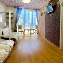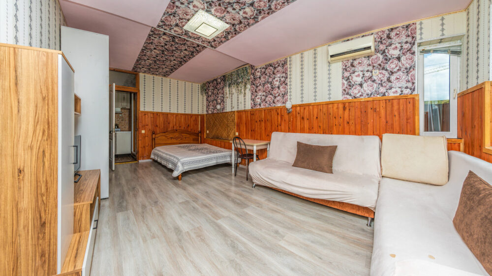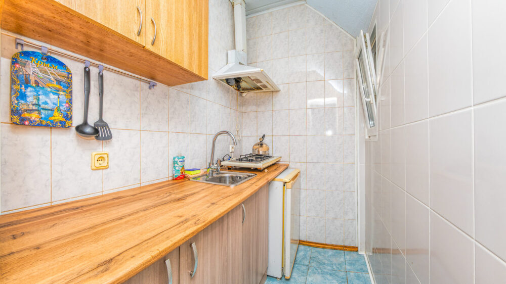Номер на 1 этаже. Кухня, газовая плита, посуда. Кафельный пол. По договорённости возможно проживание с собачкой.