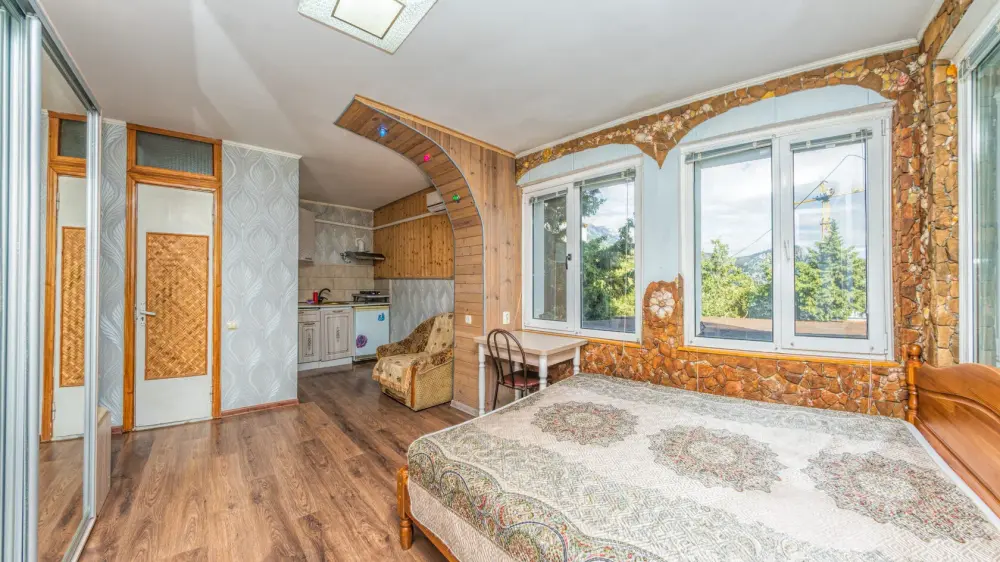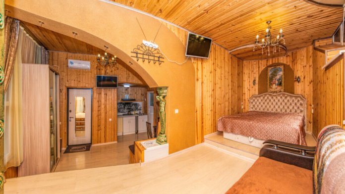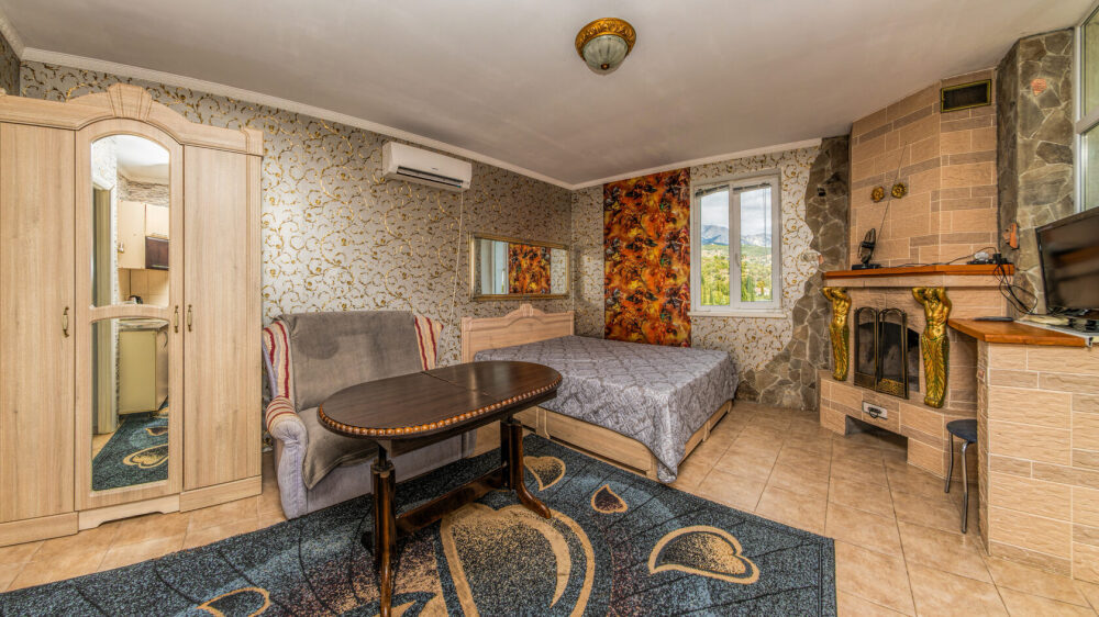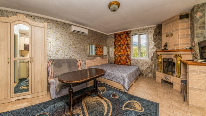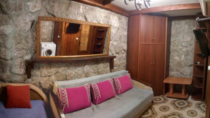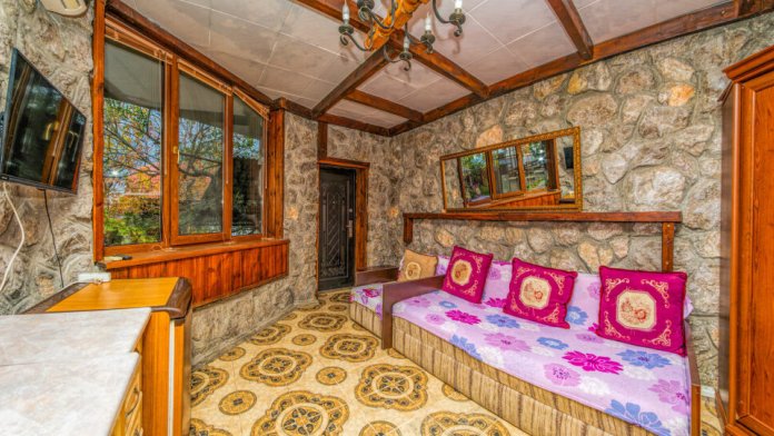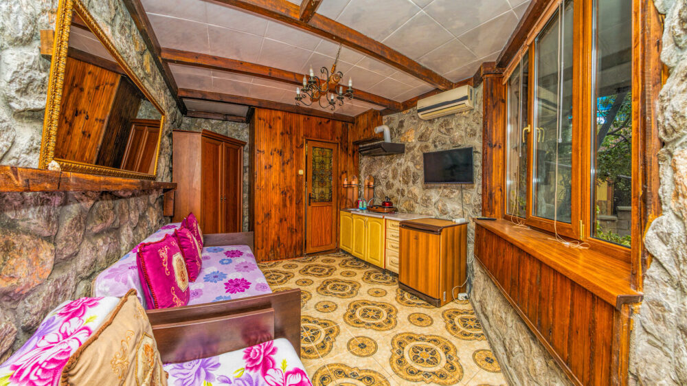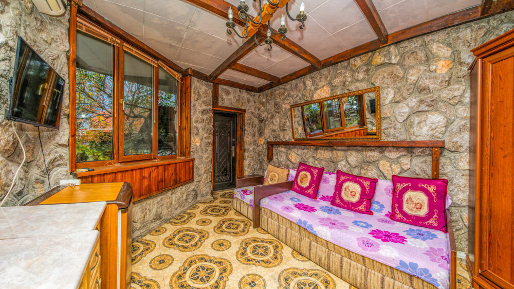 Стены номера красиво выложены каменными блоками Ай-Петринских скал.