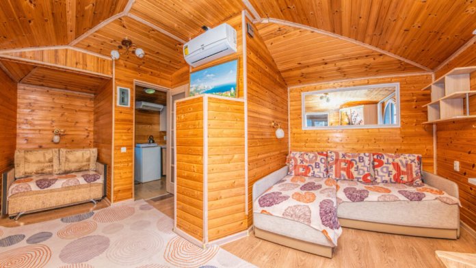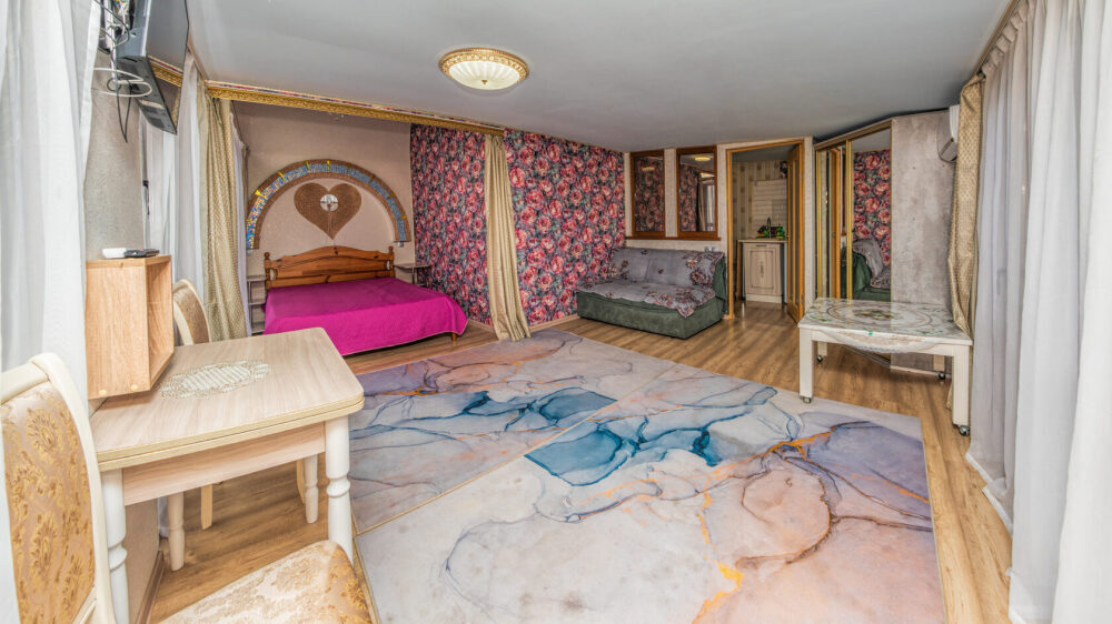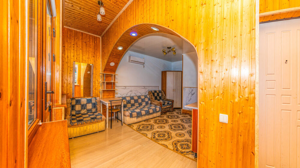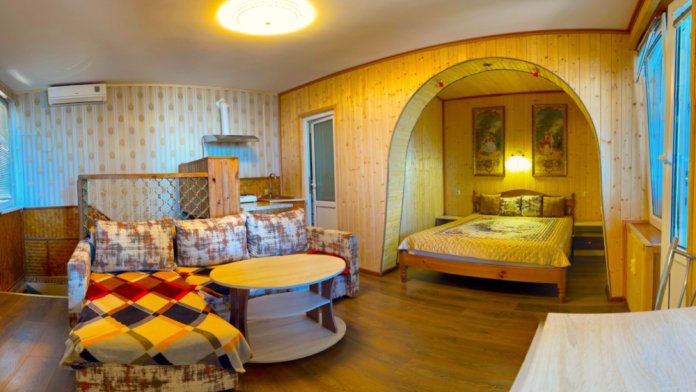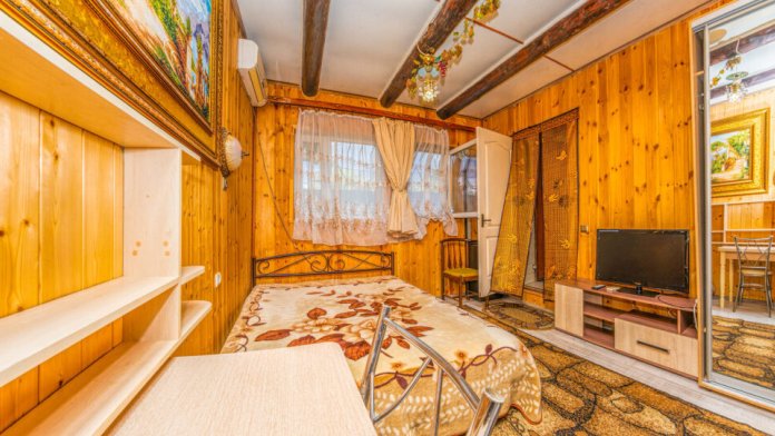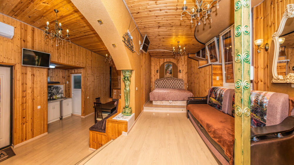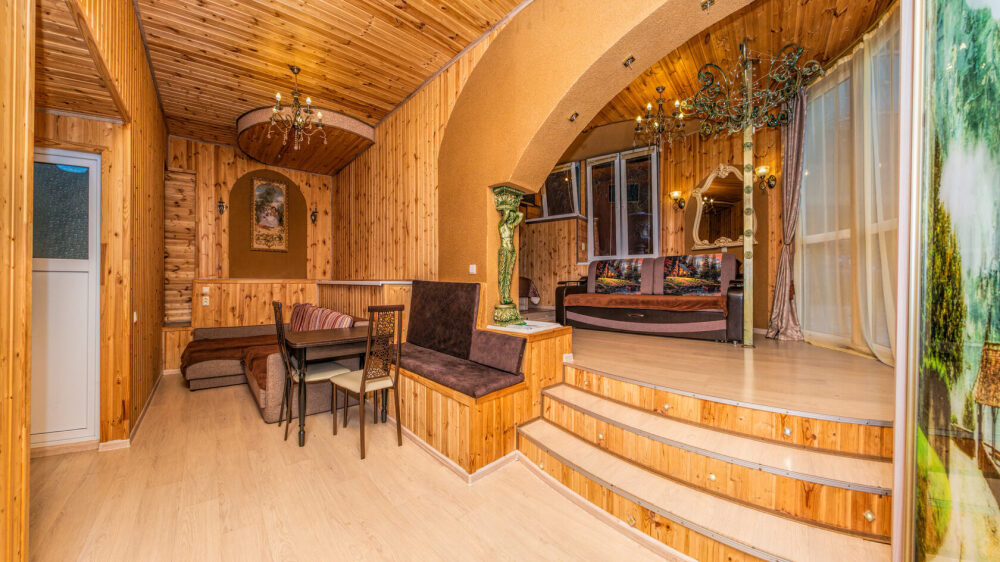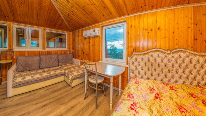 Стены номера красиво выложены каменными блоками Ай-Петринских скал.