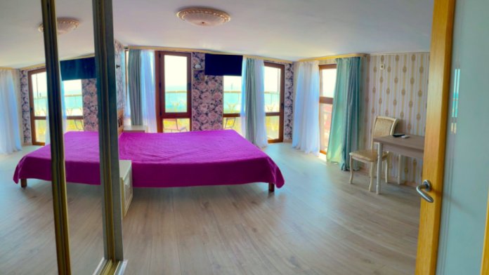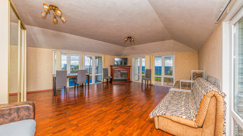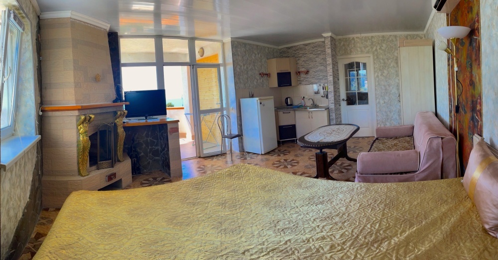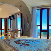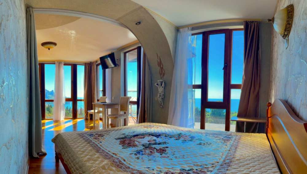 В номере 5 видовых балконов с завораживающим видом на морскую гладь, горные вершины и скалы в море. Есть электро-камин.