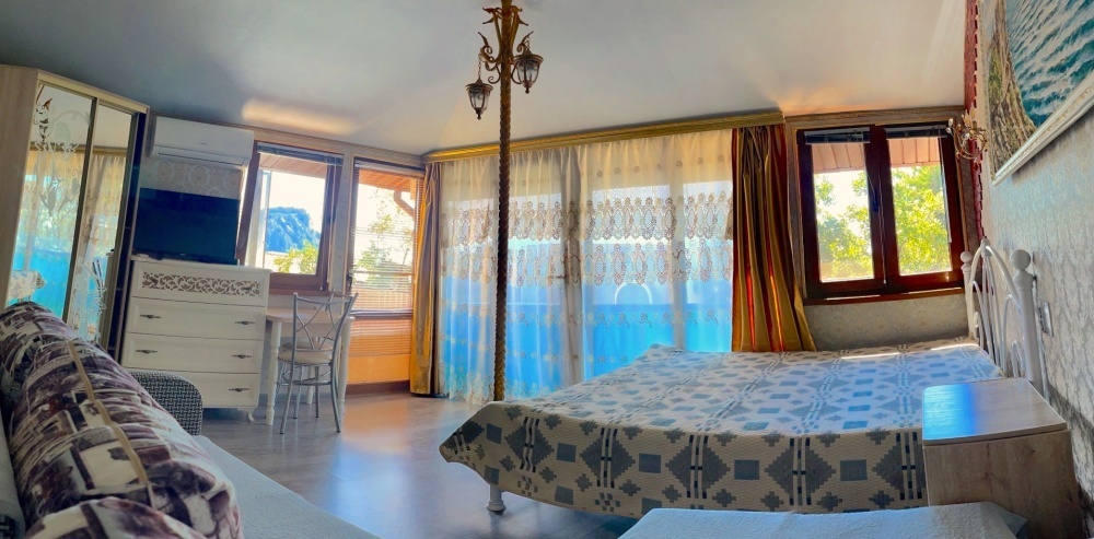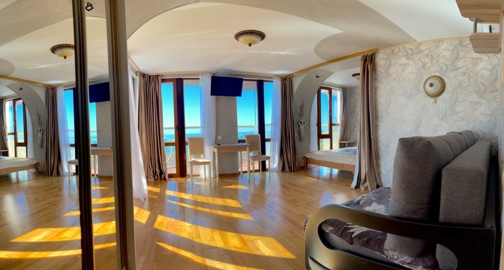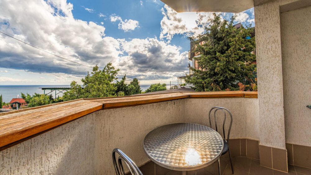 Номера с видовыми балконами и террасами с видом на горы и море сделают Ваш отдых незабываемым. К Вашим услугам 1, 2 и 3-комнатные номера. Есть вариант 2 номеров с балконами на 2 этаже, объединённых персональной видовой террасой (1-комнатный номер С1 и 2-комнатный номер Восток Средний (ВС)).