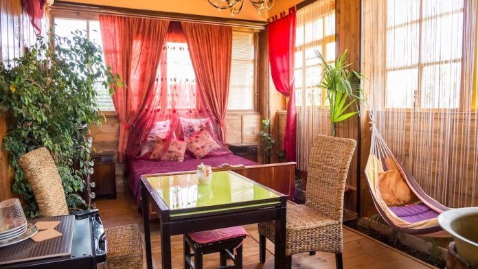 Мебель в ретро-стиле, гамак и пальмы прямо внутри комнаты!