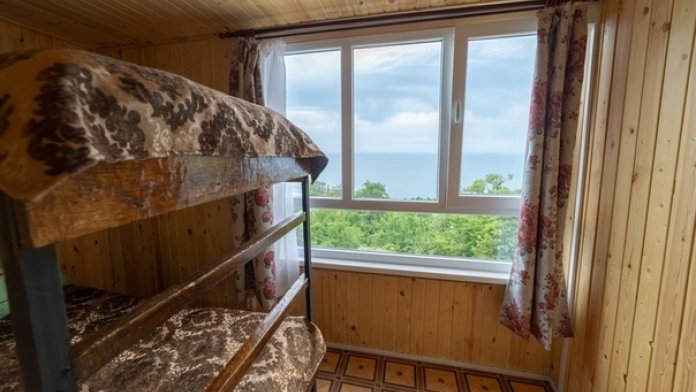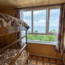 Номер 18 кв. м со своей открытой террасой с видом на море. Двухъярусная кровать полуторная. Стол, стулья, шкаф, вешалки. Санузел. В номере раковина и туалет. Душ на улице.