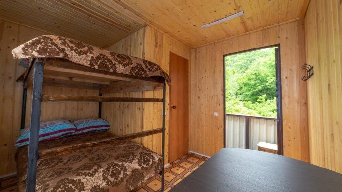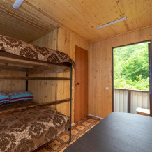 В каждом номере - двухъярусные кровати, санузел, стол, стулья, постельное белье. Горячий душ, стиральная машина - на территории в отдельном блоке.