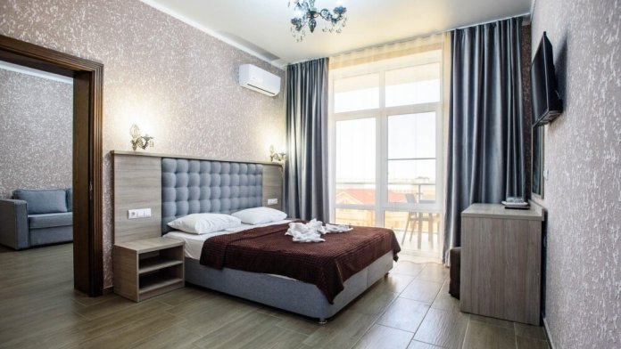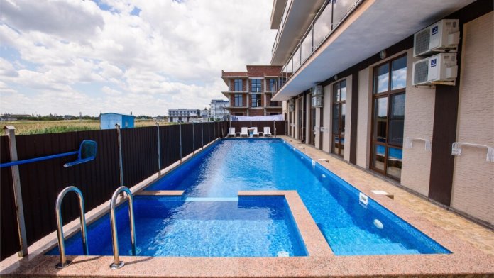 Отель «Одиссея» с собственным бассейном, современный отель, 2020 г. постройки, расположен на 1-й береговой линии, через дорогу от Золотого пляжа курорта Феодосия.