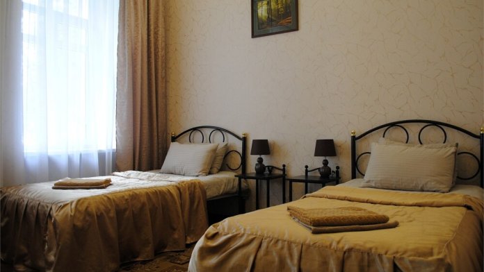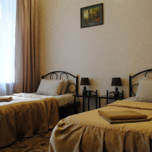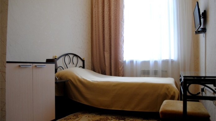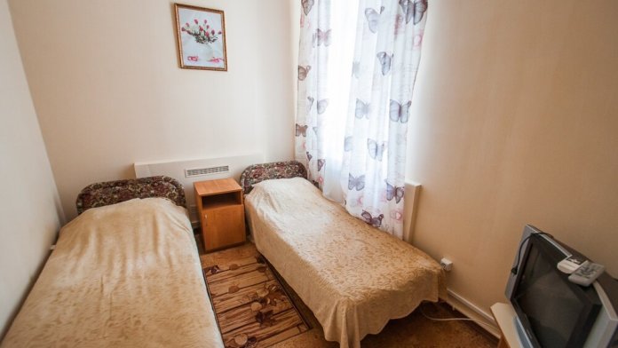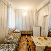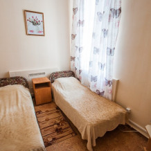 Однокомнатный номер. В номере две одноместные кровати, шкаф, зеркало, холодильник. Душевая и санузел на этаже.