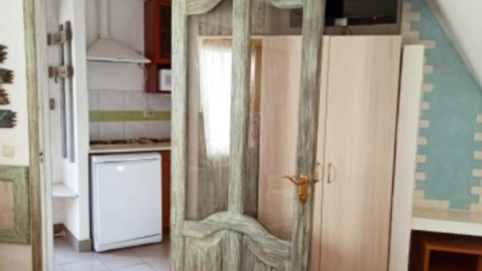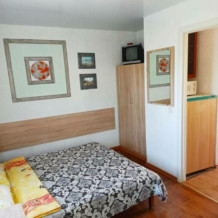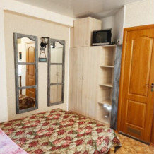 Номер № 2 на первом этаже гостевого домика. Маленький номер для одного или двух человек. В номере есть мини кухня: холодильник, СВЧ печь, мойка, посуда, эл. чайник. В номере вентилятор.