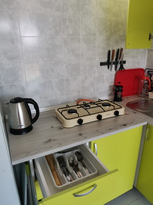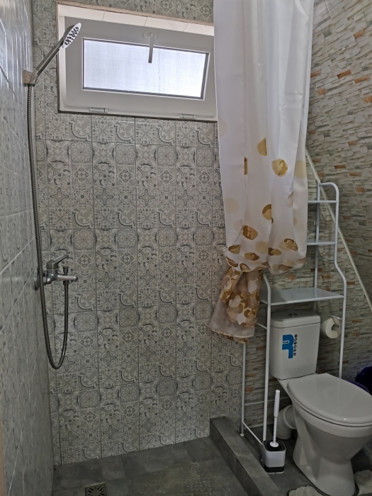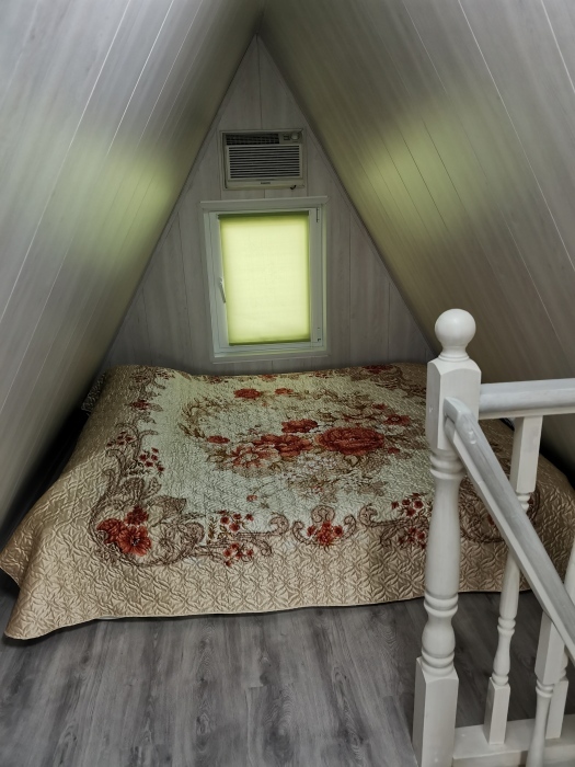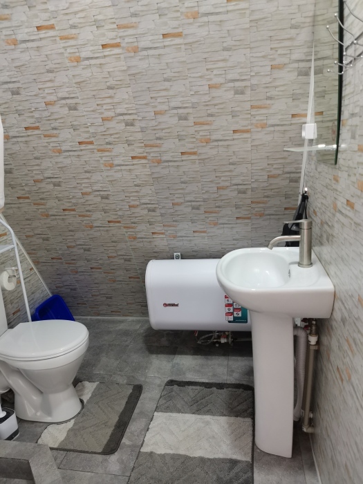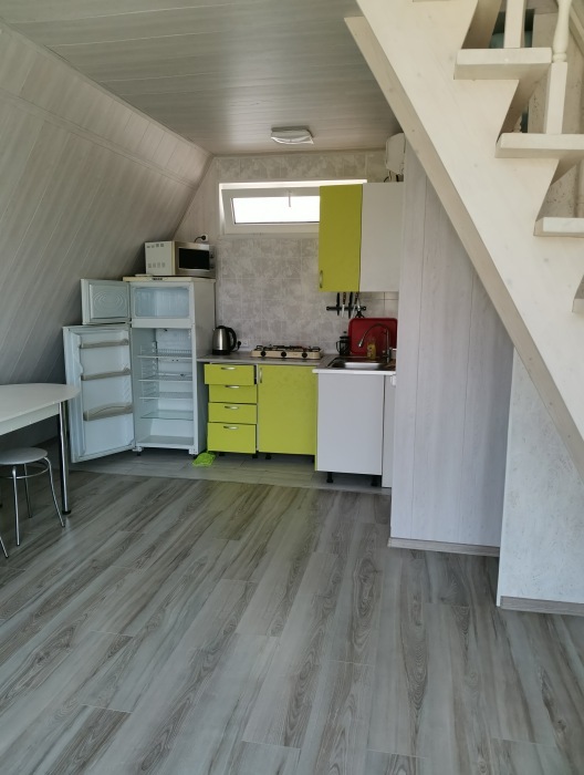 Новенькие 2х этажные домики со своей отдельной территорией под ключ. Терраса под крышей от палящего солнца, так же на улице шатер с обеденным столом и стульями. На каждом этаже кондиционер. Кухня со всем необходимым для приготовления пищи,газовая плита. Ванная комната с бойлером, душем и с/у., есть фен.