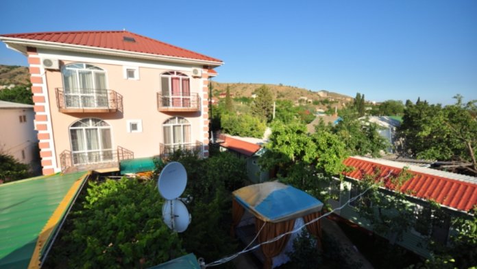 В центре поселка Морское, в нескольких минутах неспешной ходьбы от моря, находится вилла «Бахт».