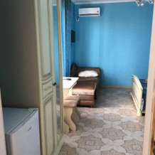 В номерах все удобства: душ, туалет, кондиционер, телевизор, холодильник, фен и банные полотенца, завтраки включены, балконы в номерах общие.