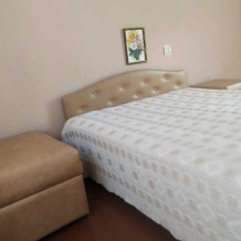 Номер в деревянной мансарде на втором этаже с отдельным входом, с общим балконом. В номере одна двуспальная или две односпальные кровати.