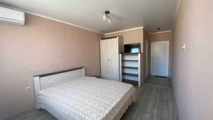 Есть стол со стульями, чайник. Душ, туалет на этаже на два номера.