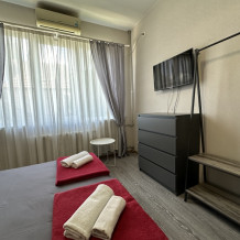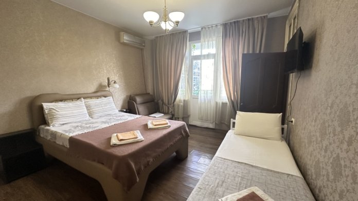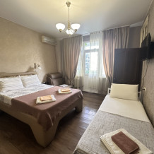 Комфортный однокомнатный номер с одной двуспальной или двумя односпальными кроватями и диваном-кроватью.