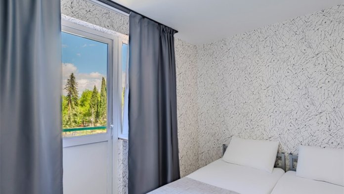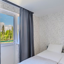 Комфортный однокомнатный номер с одной двуспальной кроватью, креслом-кроватью и балконом.