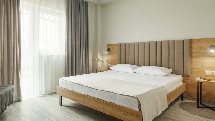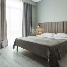 В номере: двуспальная или две односпальные кровати, кресло-кровать или тахта (длина спального места 165 см), цифровое ТВ, холодильник, сплит-система, ванная комната с душем, балкон/терраса.