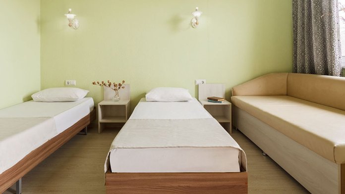 В номере: две двуспальные кровати или 4 односпальные кровати/двуспальная кровать и диван, стол стул, цифровое ТВ, холодильник, сплит-система, ванная комната с душем, балкон.