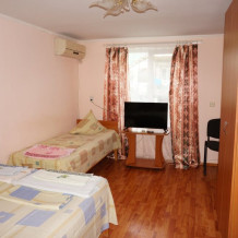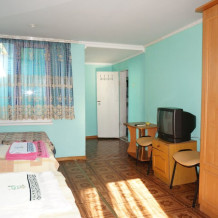 Однокомнатный «Стандарт» рассчитан на 2−3 человека, находиться на 1 или 2 этаже. В номере - 1 двуспальная (на 1 этаже) или 1 двуспальная составная (на 2 этаже) и 1 односпальная кровати, санузел и душ, ТВ, холодильник и кондиционер, Wi-Fi. Постельное белье и полотенце предоставляются. Общая кухня на территории со всем необходимым для приготовления пищи.