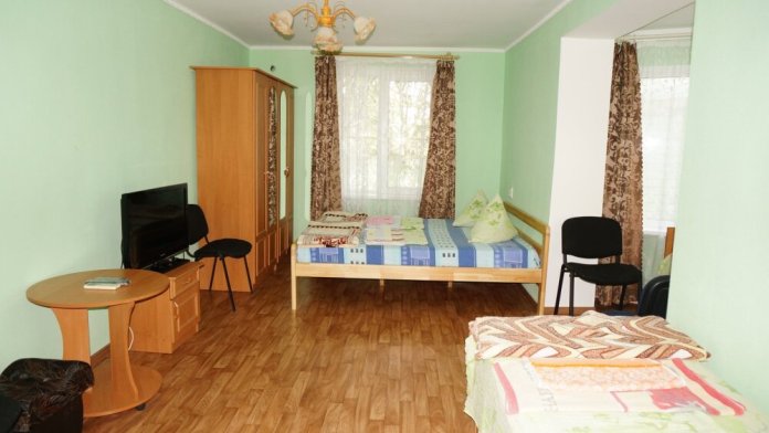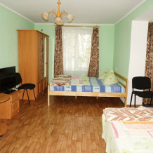 Предлагаем комнаты со всеми удобствами: душ и туалет собственный, горячая и холодная вода круглосуточно. В комнатах есть односпальные и/или двуспальные кровати, шкафы для одежды, прикроватные тумбочки, столики, стулья, постельное бельё и полотенца. Однокомнатные «Эконом» и «Стандарт» рассчитаны на размещение от 2 до 5 человек, а двухкомнатные — от 4 до 7 человек. Санузел включает себя душ с горячей водой, умывальник и унитаз.