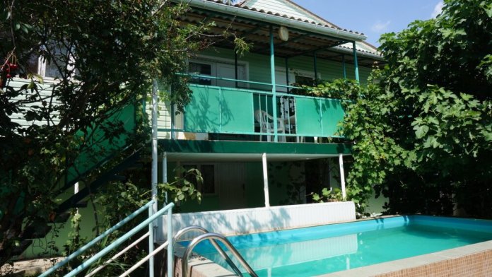 Закрытый двор с бассейном размером 5×2 и глубиной 1.2, беседками, небольшой детской площадкой, кухней в общем доступе, бесплатной парковкой и WiFi. На территории установлена насосная станция, поэтому у нас вода круглосуточно (в том числе горячая), а не по расписанию, как это часто встречается в Крыму.