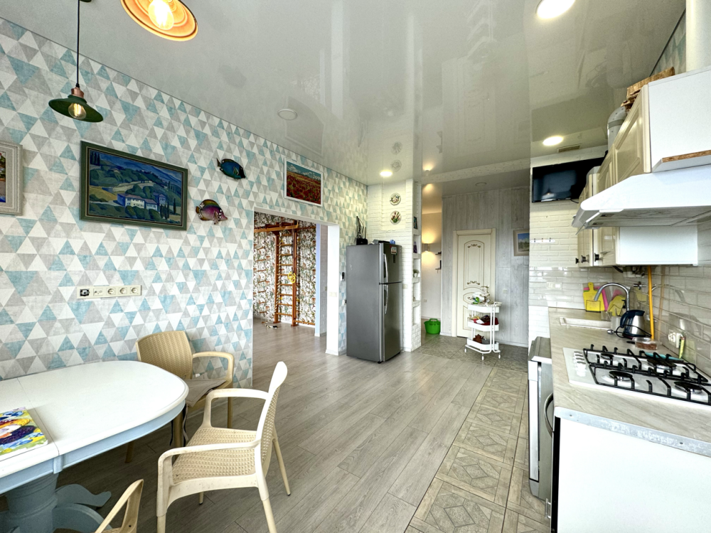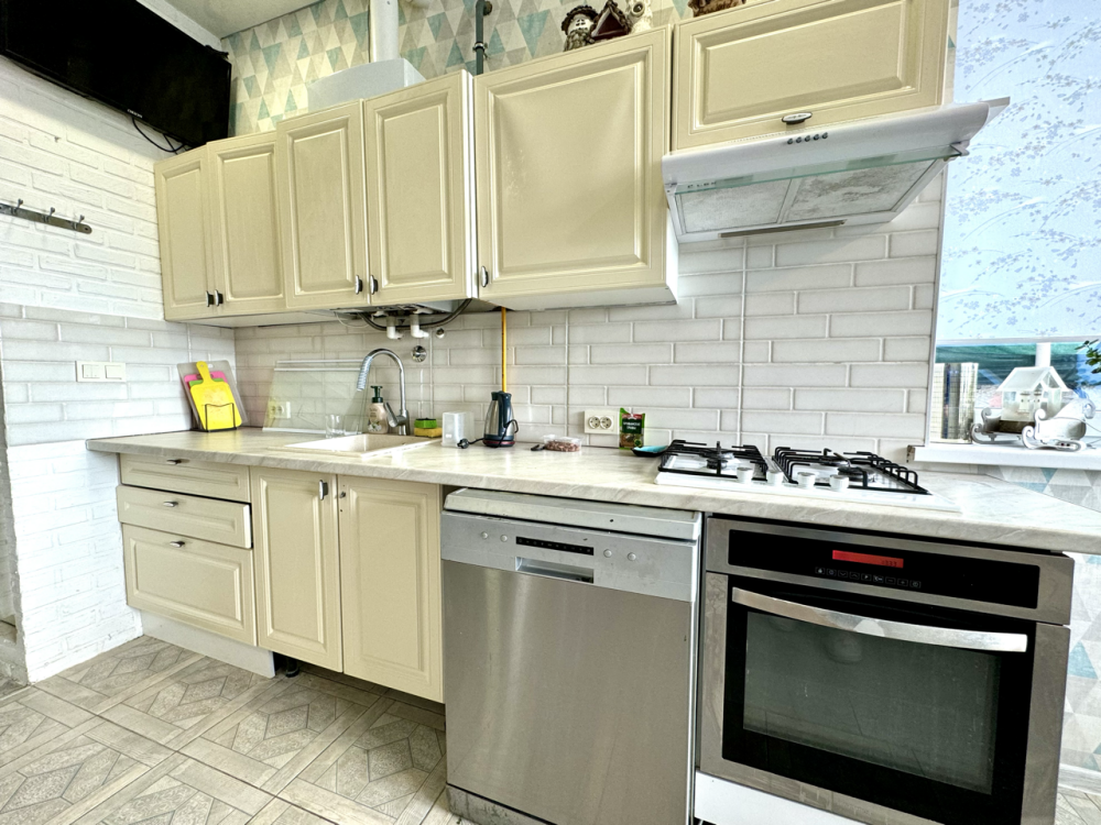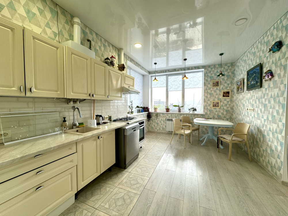 - Кухня: газовая четырехкомфорочная плита, духовка, вытяжка, посудомоечная машина и вся необходимая посуда.