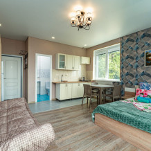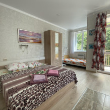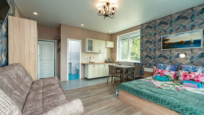 8 уютных номеров, на любой вкус и вместимость гостей. В каждом номере имеется оборудованная кухня со всем необходимым.