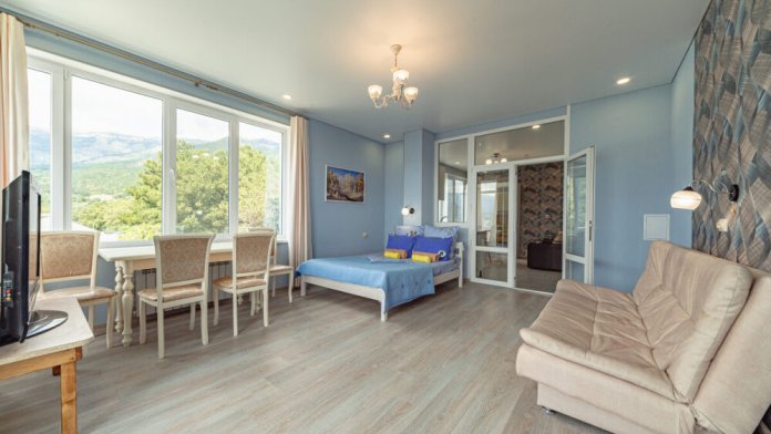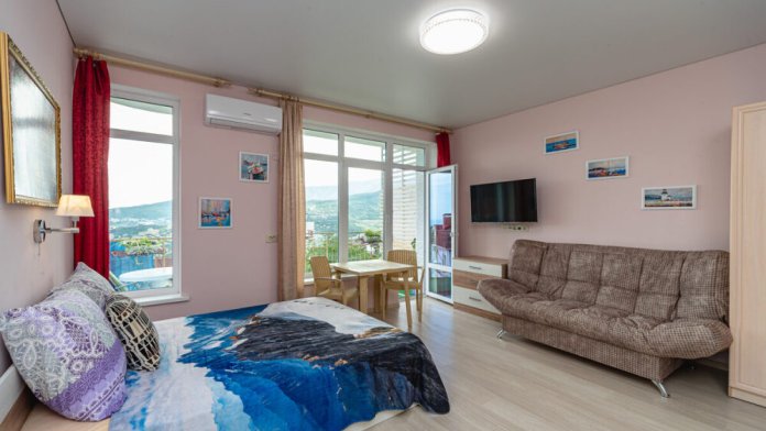 Cтудия 30 м c балкoнoм и видoм нa лес в гостевoм домe «Нaд Ялтoй»