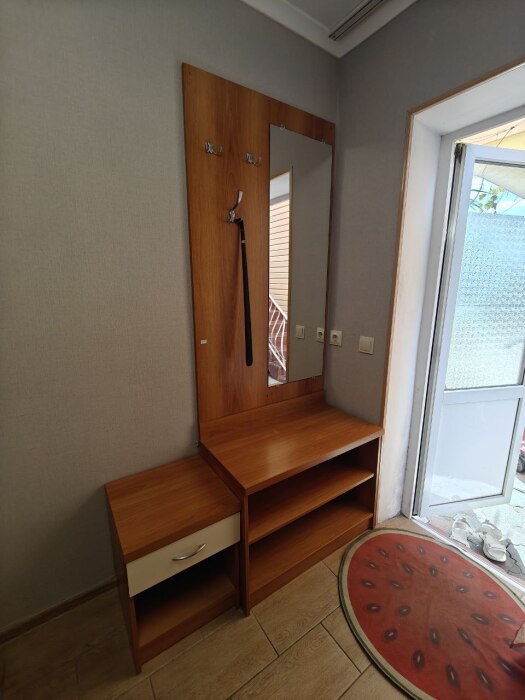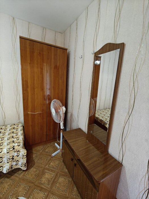Имеется шкаф, вешалка, туалетный столик, стулья.