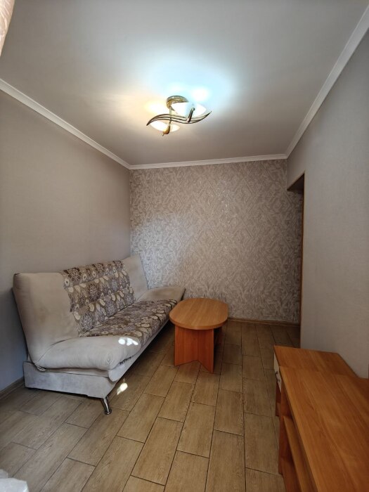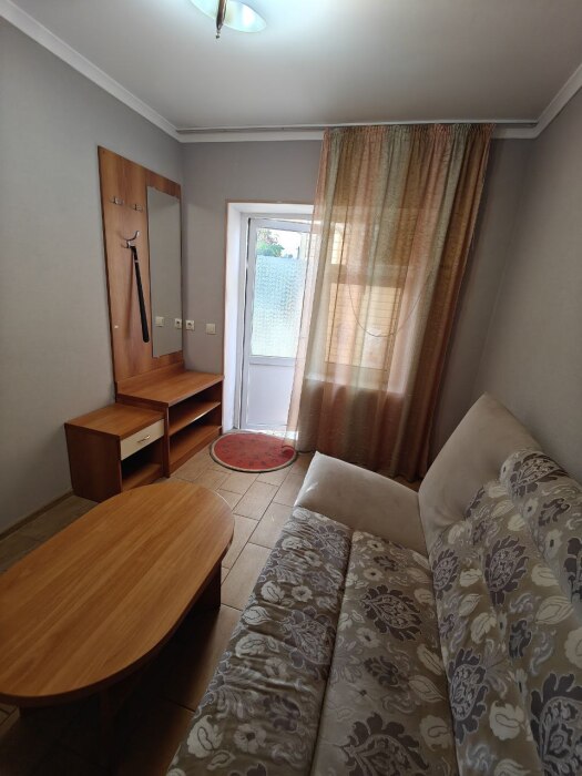 Имеется телевизор, шкаф, вешалка, журнальный столик, стулья.