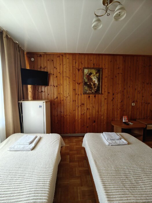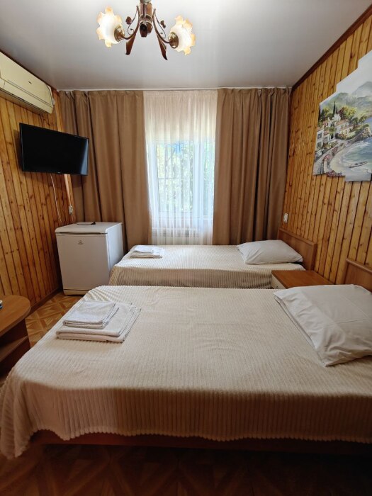 В номере: 1 двуспальная кровать, 1 односпальная кровать.
