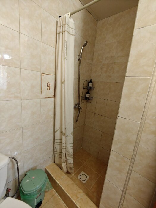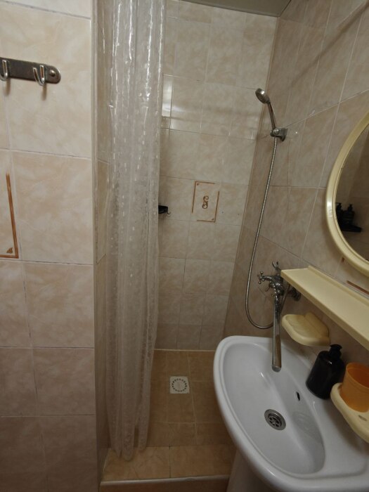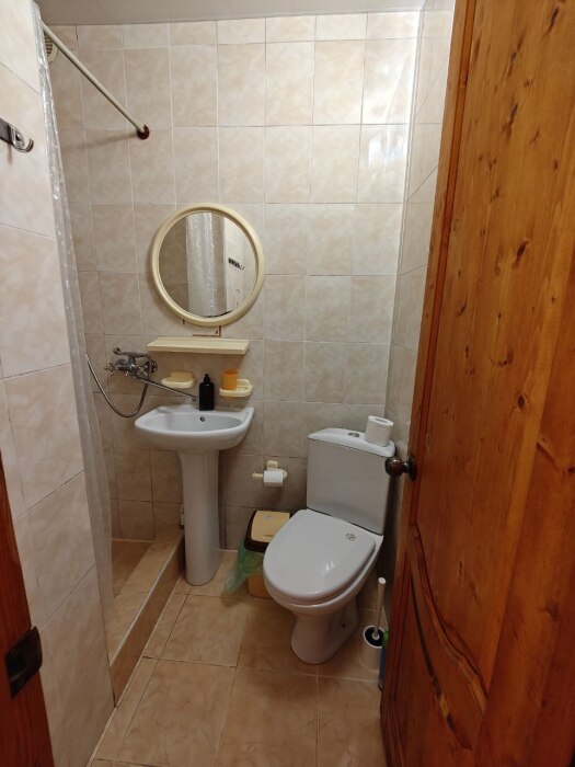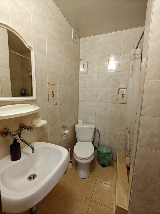 Индивидуальная ванная комната: душ, раковина, туалет.