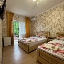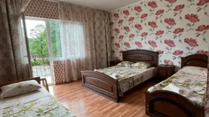 В номере: 1 двуспальная и 2 односпальные кровати.