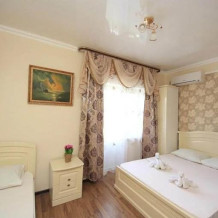 Для размещения отдыхающих наш гостевой дом, всегда рад предложить Вам по-домашнему уютные, просторные 2,3-местные однокомнатные номера со всеми удобствами, категорий «Полулюкс». Наши номера имеют все необходимое для качественного отдыха и комфортного проживания: современная качественная мебель, сплит-система, телевизор, цифровое ТВ, безлимитный Wi-Fi интернет, холодильник, балкон, туалет, душ. Вода холодная, горячая - круглосуточно.