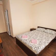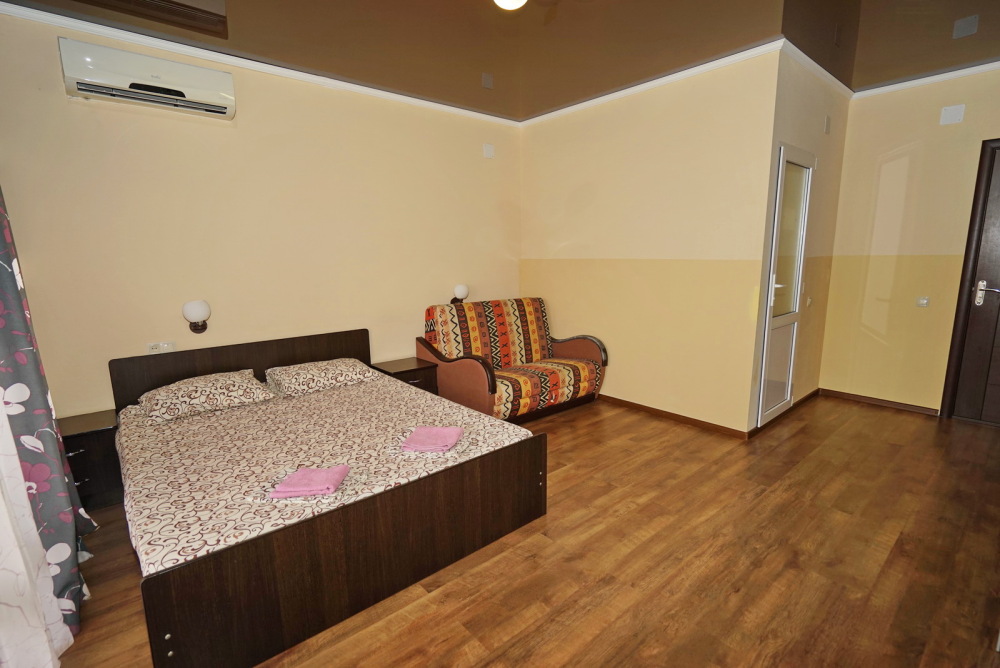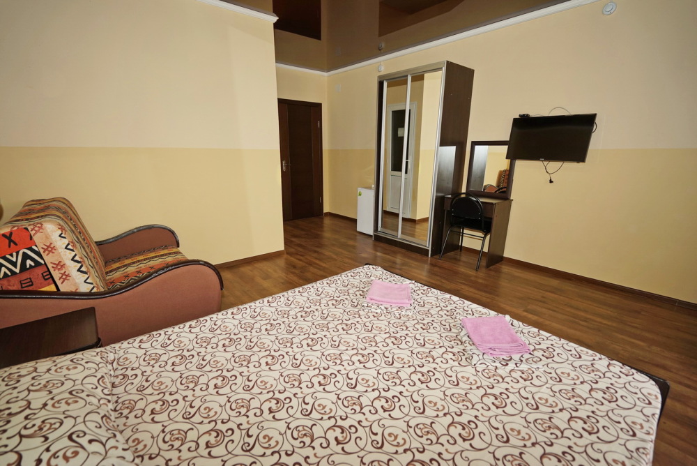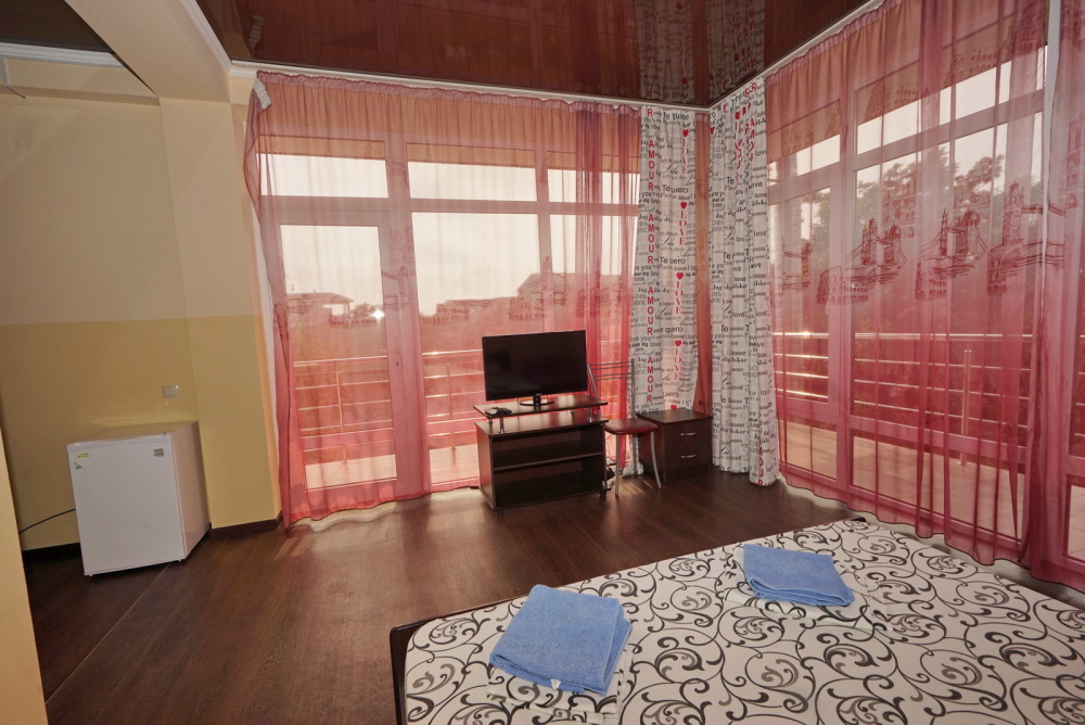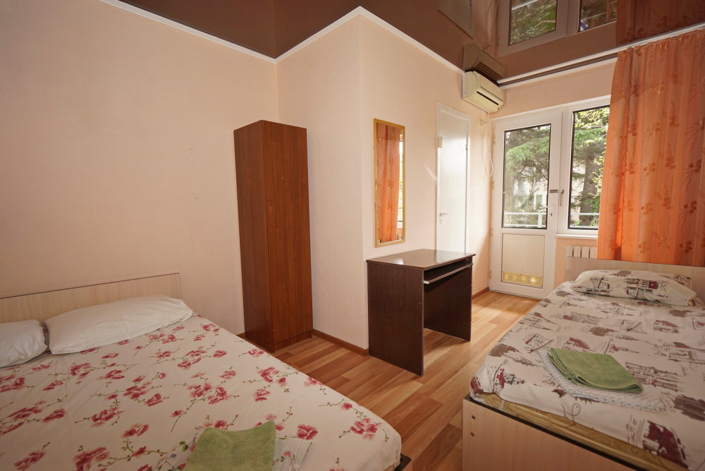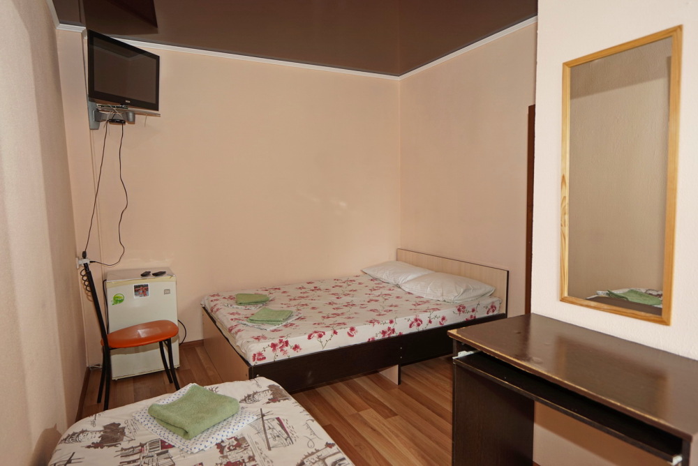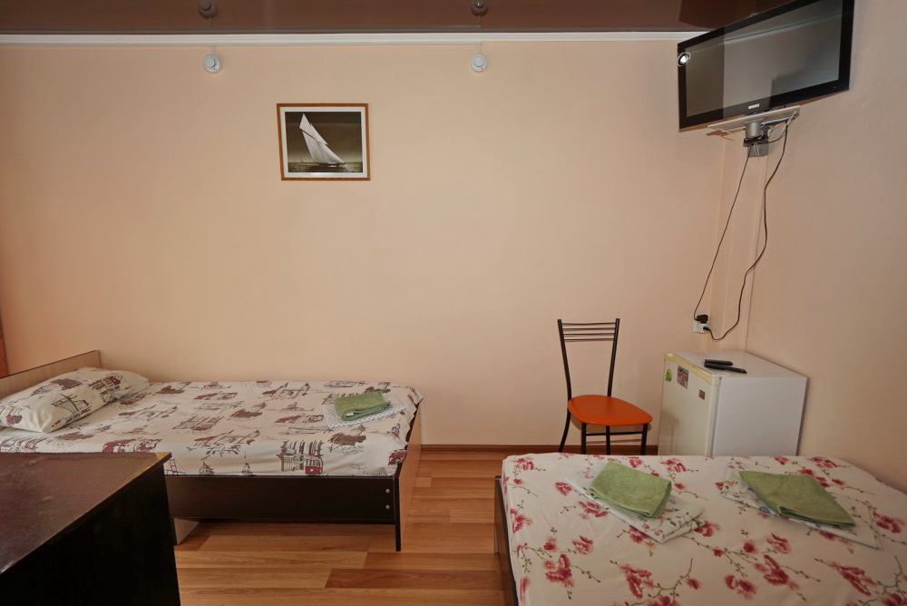 Номерной фонд гостевого дома - это комфортабельные номера со всеми удобствами. 2,3,4-местный номера оборудованы всем необходимым: ТВ, холодильник, санузел, сплит-система, современная обстановка в каждом номере. С общей террасы открывается вид на колесо обозрения. По правилам бронирования услуга выбора этажа недоступна. Бронирование на категорию номера, этаж с 1-4 по факту заселения.