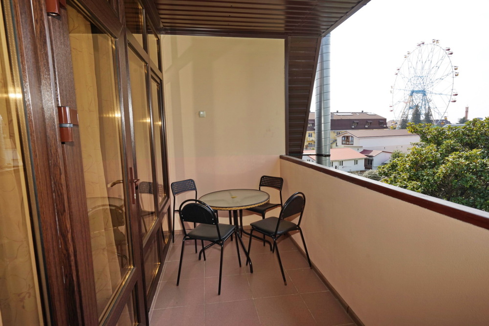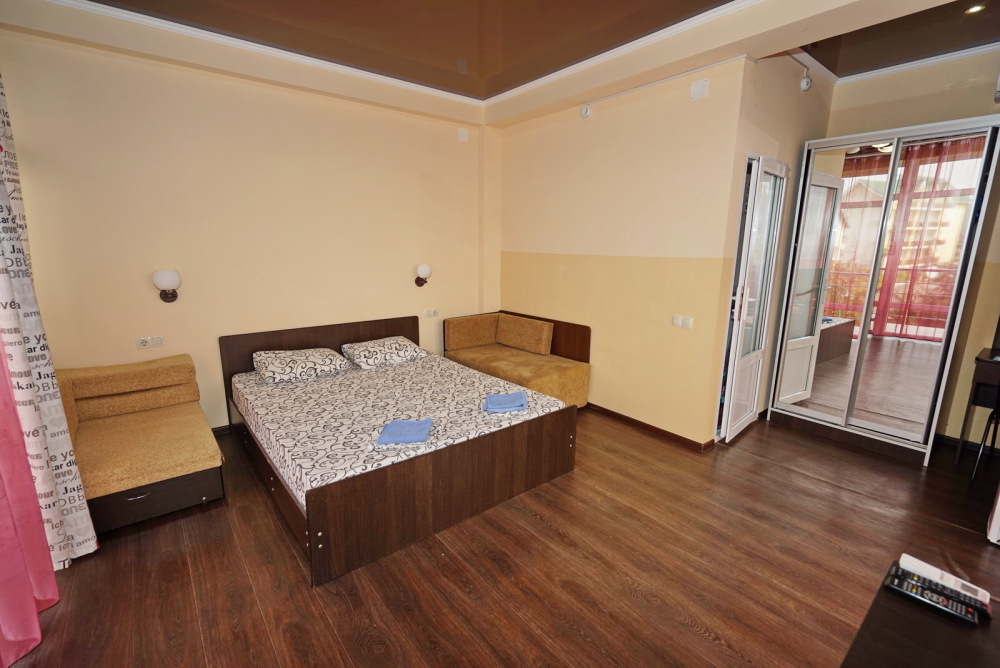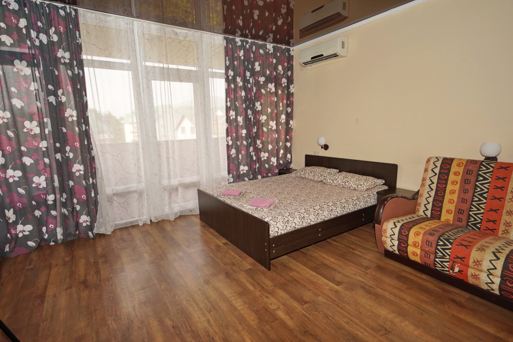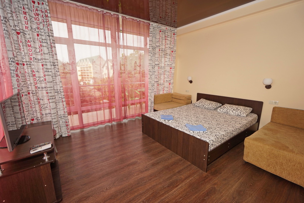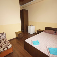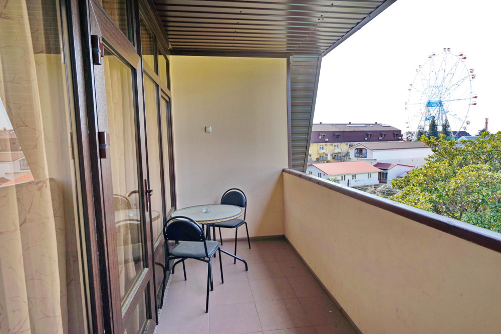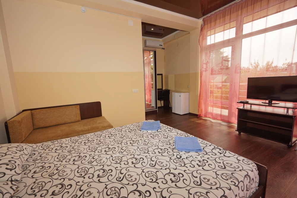 Номерной фонд гостевого дома - это комфортабельные номера со всеми удобствами. 2,3,4-местный номера оборудованы всем необходимым: ТВ, холодильник, санузел, сплит-система, современная обстановка в каждом номере. С общей террасы открывается вид на колесо обозрения. По правилам бронирования услуга выбора этажа недоступна. Бронирование на категорию номера, этаж с 1-4 по факту заселения.