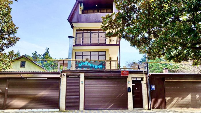 Гостевой дом «Бригантина» находится в сердце курортного поселка Лазаревское, всего в 2 минутах ходьбы до полностью оборудованного пляжа «Калипсо», также неподалеку располагается пляж «Салют» и «Лазурный».