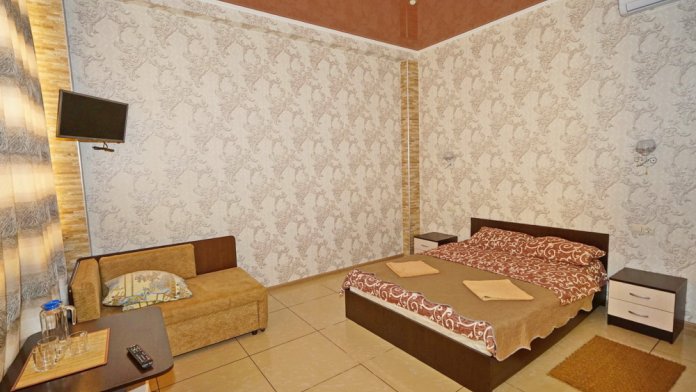 В номерах двухспальная кровать, телевизор, холодильник, удобства, кондиционер.