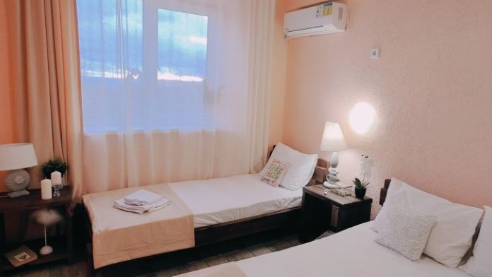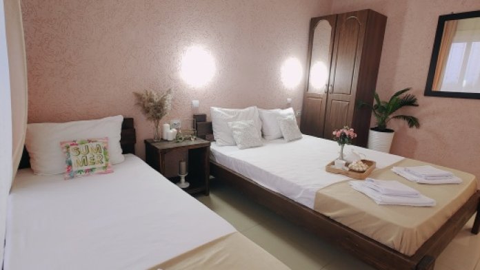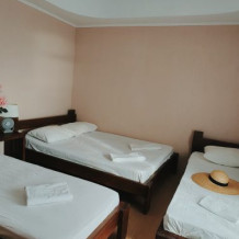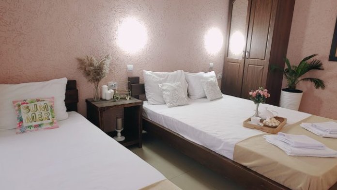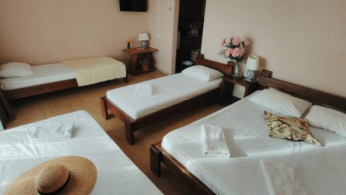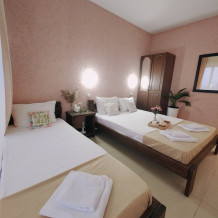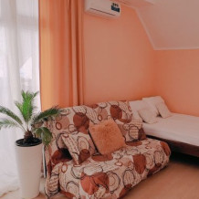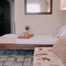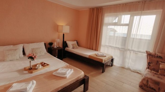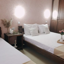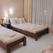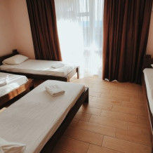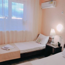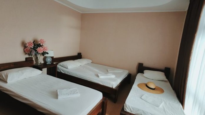 Трехместный номер с собственной ванной комнатой. Номер оснащен: двуспальная кровать и односпальная кровати, шкаф, телевизор, мини-холодильник, кондиционер. Балкон с видом на море оснащен мебелью для отдыха.