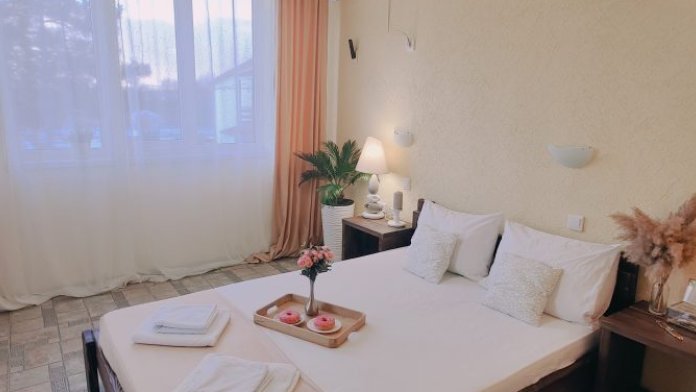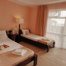**Преимущества:** Отель находится на первой линии, рядом с широким пляжем. В стоимость номера включены лежаки под навесами. Море просто великолепное и очень чистое, заход в воду удобен как для детей, так и для взрослых. Купаться и загорать — сплошное удовольствие! Территория парк-отеля ухоженная и привлекательная, с множеством зеленых насаждений, газонов и скамейками. Есть большой бассейн, хотя он и не подогреваемый, но есть зона для малышей. Также имеется достаточно просторная мангальная зона с несколькими мангалами. Однако, стоит избегать номеров, расположенных рядом с ней из-за дыма и постоянного шума от отдыхающих. В непосредственной близости находятся продуктовый магазин, лавка с фруктами и овощами, а также магазин товаров для отдыха. **Недостатки:** К сожалению, еда в столовой отеля оставляет желать лучшего — она невкусная и холодная. Двери в номерах прозрачные, что вызывает недоумение. Свет в коридоре включается рано и светит в номер, а также горит до 23:00. Слышимость в номерах довольно высокая, что может быть некомфортно. Холодильник в номере издает неприятный шум, а матрасы на кроватях неудобные и дешевые. За 4 ночи/5 дней нам частично поменяли только полотенца, при этом уборка и вынос мусора не проводились.