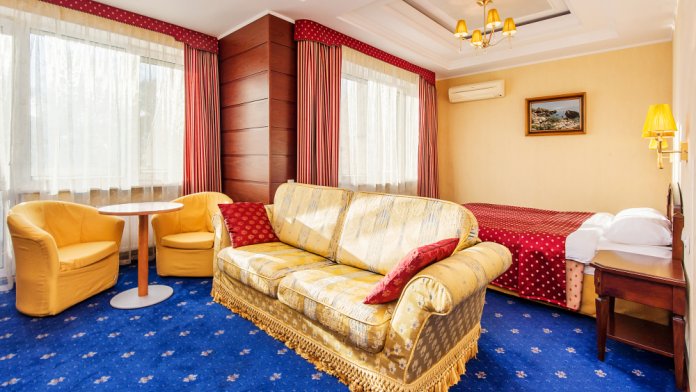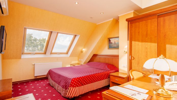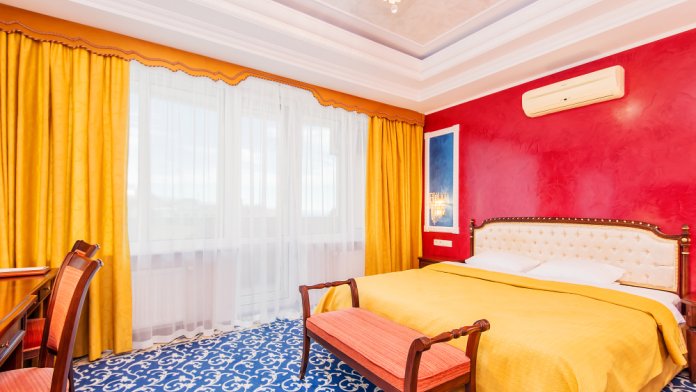 В номере есть электрочайник, кондиционер, ЖК телевизор, холодильник и сейф. Мягкий ковролин, поглощающий шум, просторные кровати и приглушенное освещение, создадут атмосферу уюта и покоя.