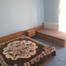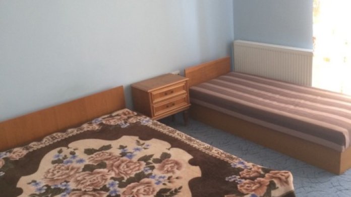Уютный 2-комнатный номер. Комнаты не смежные, независимые друг от друга. В каждой комнате телевизор, кондиционер,мебель, выход на балкон, балкон на 2 комнаты общий, затянут виноградом. Санузел расположен на этаже рядом с комнатами, относится непосредственно к данному номеру. На этаже так же находятся микроволновка, гладильная доска с утюгом. Летняя кухня расположена на территории двора, это отдельное здание в 10 м, относится только к данному номеру. Кухня оборудована всем необходимым. К номеру так же относится свой столик и теневой зонт на улице возле кухни.